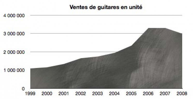 Selon d'autres sources il se vendrait entre 400000 et 500000 guitares en france chaque année...