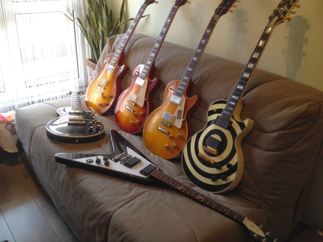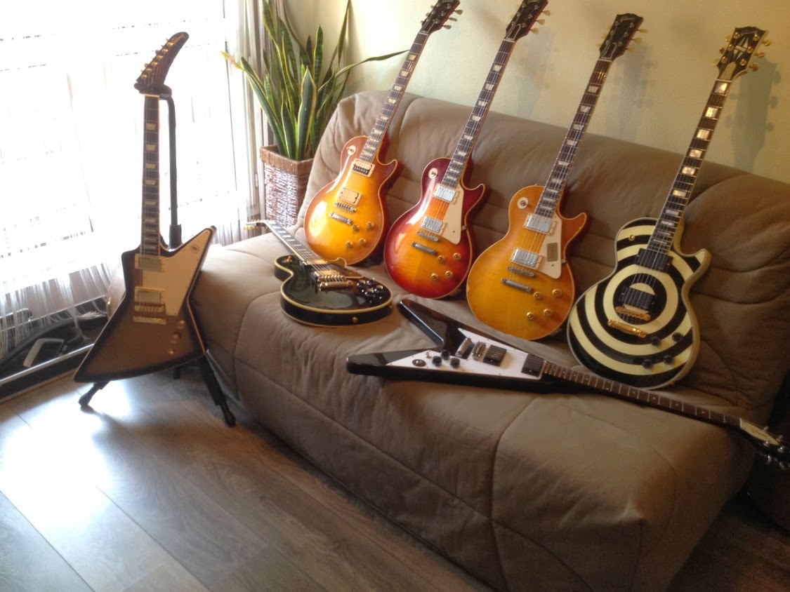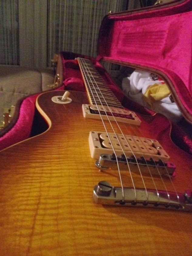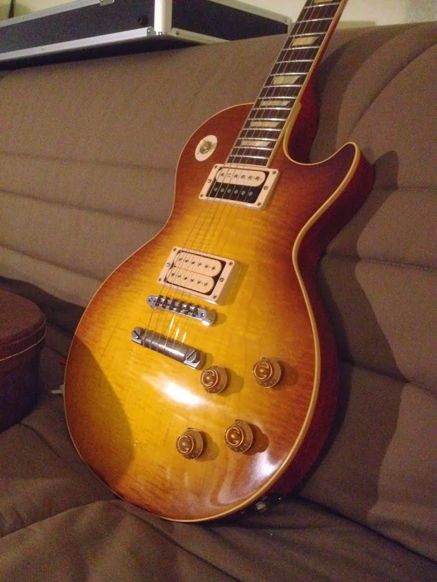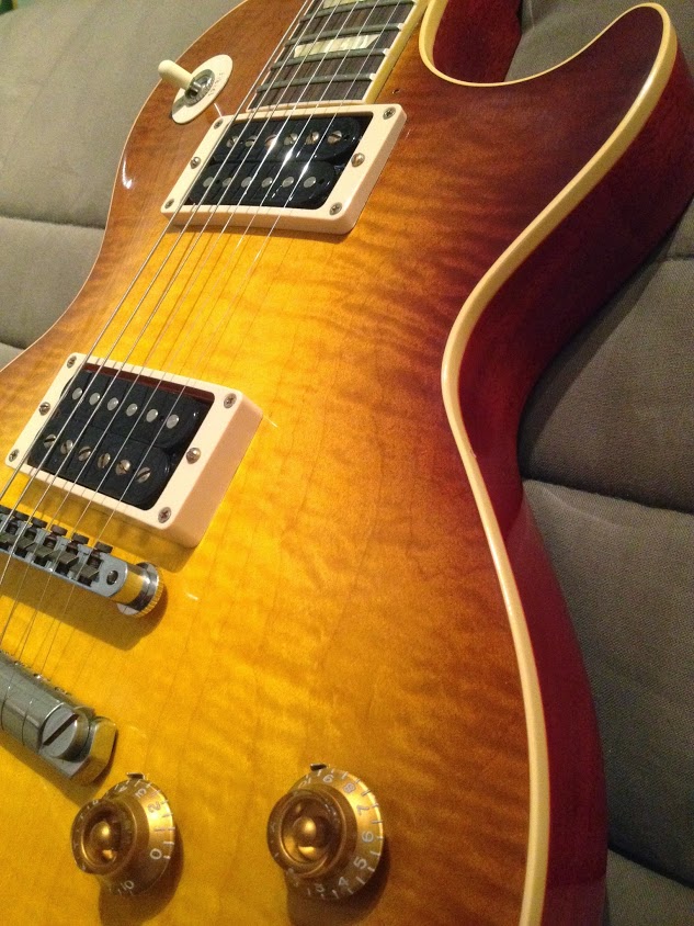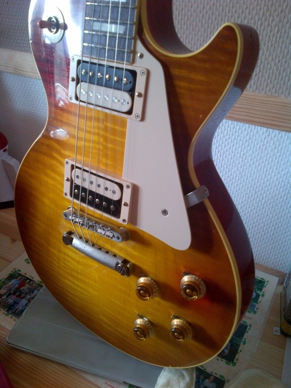 Pour la duane, c'est une guitare tres tres facile a jouer, le manche est a la limite du 60. Elle aussi monté avec les custombuckers, elle sonne avec pas mal de medium, c'est une guitoune pour faire du solo !