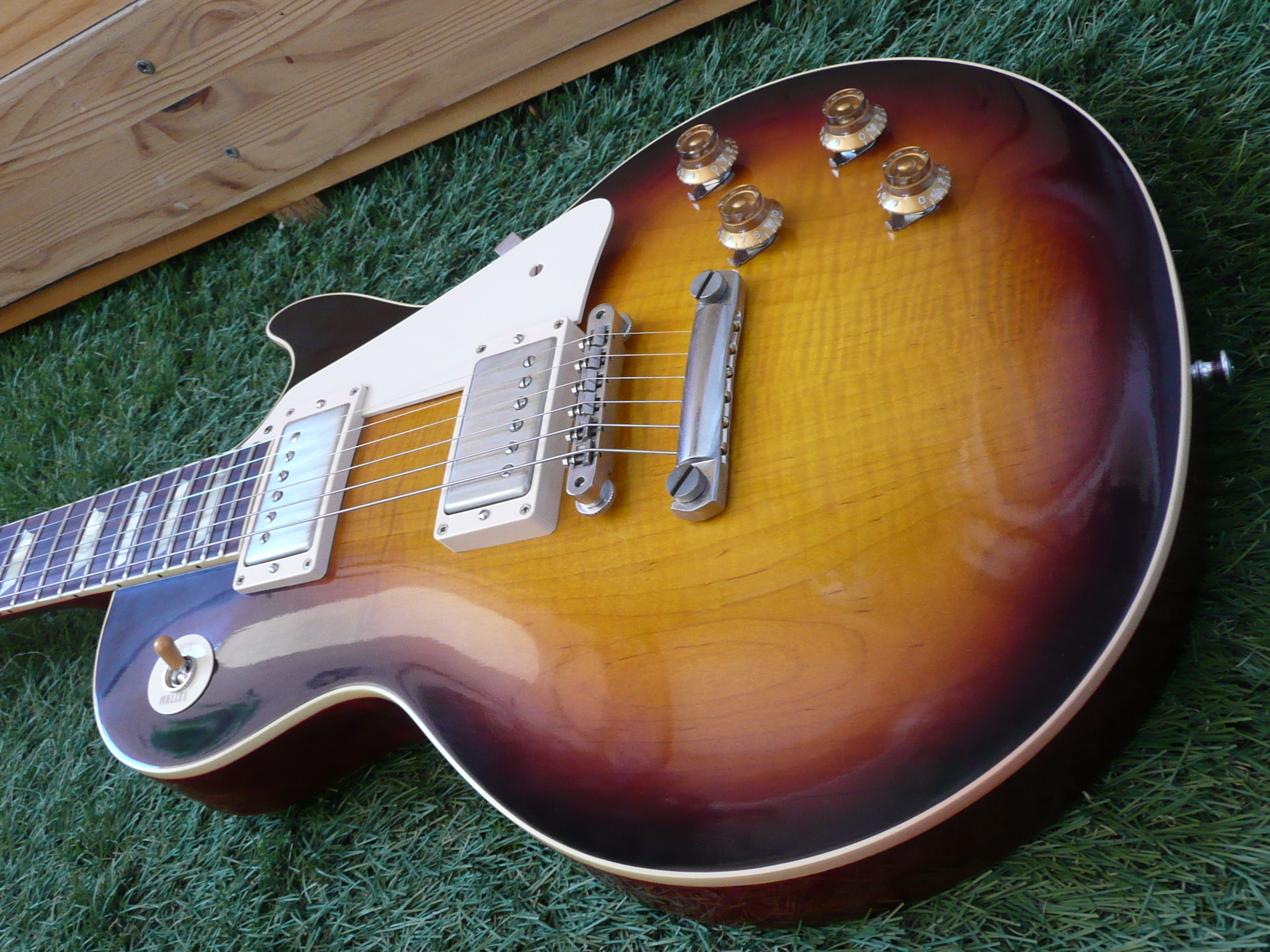 Pour le Goldtop ça varie selon l'angle et la lumière. Comme on peut le voir sur les 3 tofs, il peut être plus ou moins "vert"
