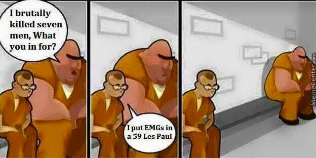 Il ressort quand même de ce que dit Seymour qu'un humbucking sans capot est assez exposé… Voire un peu trop. J'aime bien les capots sur les miens ! (dorés sur ceux de l'ES-359)