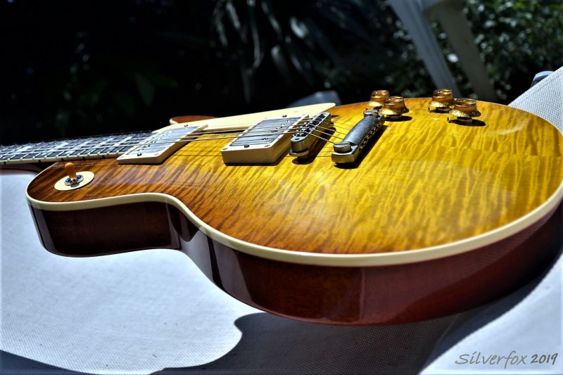 La finition est vraiment au dessus des autres Gibson que j'ai eu (Les Paul Traditionnal 2012 puis ES335 2007 avec des P90). Ça se voit notamment au niveau du binding sur le manche. Pour une fois on a pas l'impression qu'il a été taillé à l'opinel...