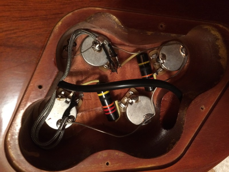 Pour l'histoire des potards : en cablage 50s il y a en effet une interdépendance du tone et du volume, ça fait partie de la magie