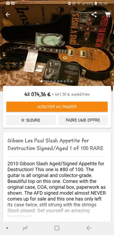 Après, Thomann, guitare neuve, c'est "seulement" 500€ de plus, tu pourras en essayer plusieurs et tu auras des pièces plastiques et caches micros true historic... Le voyage à prévoir en plus.