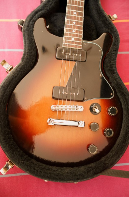 Mais celle-ci a le manche qui rentre plus dans le corps et en conséquence, pour garder le diapason de 24.75", le TOM est déplacé vers le bas du corps. Ça lui donne une gueule de gratte 3/4. Et je trouve ça moche.