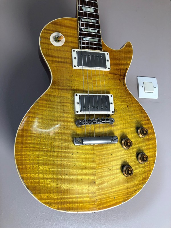 Première impressions, la peinture et le relic sont au top, l'usure ne fait absolument pas "faux", des collègues guitaristes ont trouvé aussi le travail remarquable