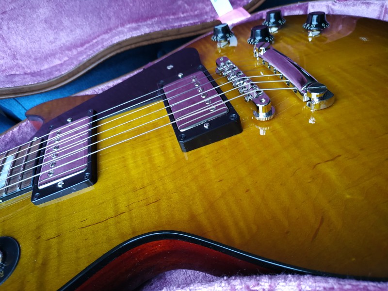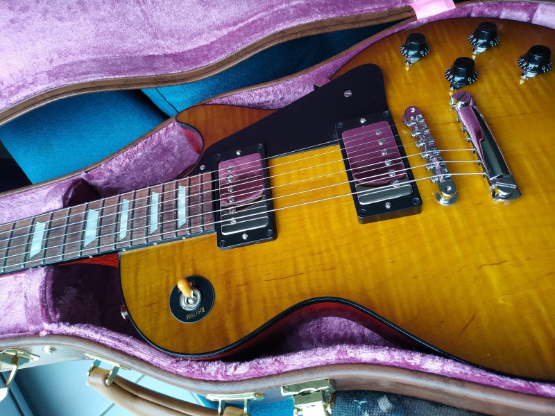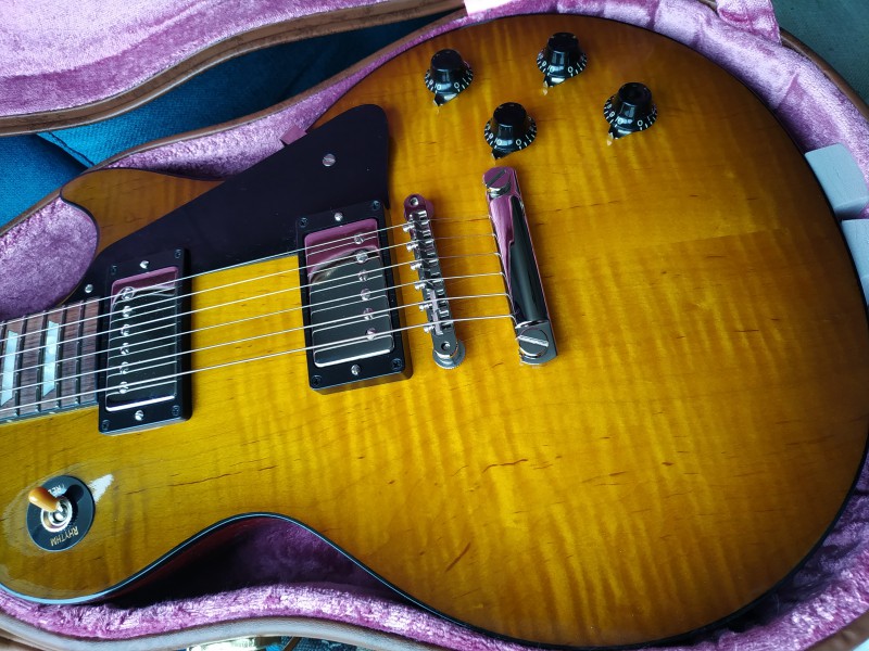 À mon humble avis, avec des knobs type "Reflector" et un pickguard 3 ou 5 plis, ce serait plus classe! Tout noir et le pickguard single-ply, ça fait un peu Les Paul Studio je trouve