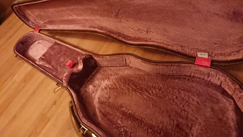 The case came with a brand new Custom Shop 1959 Les Paul Standard that has an MSRP of $9174.00. It has one small ding in the tolex on the lid. Otherwise the case is in excellent to near mint condition.