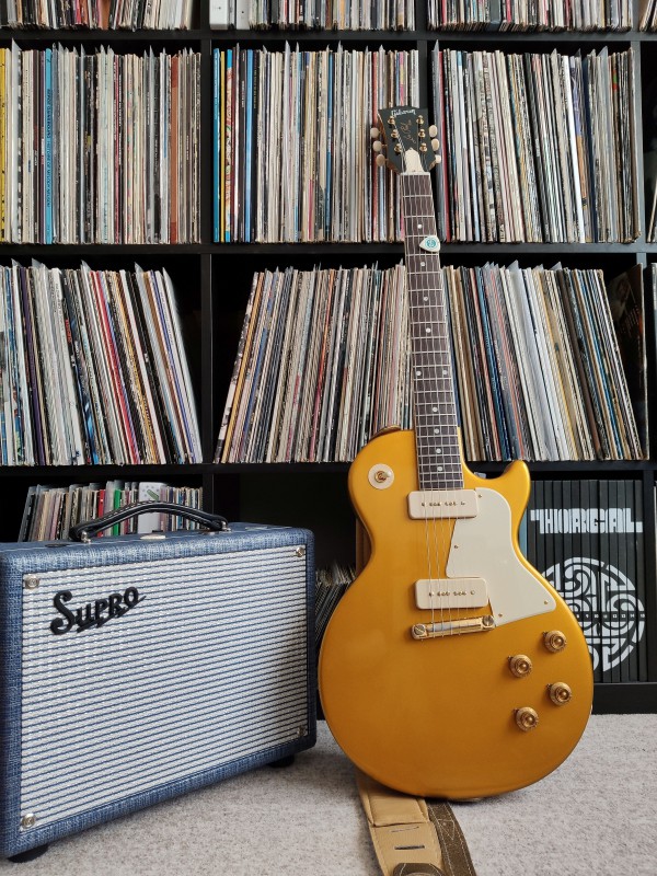 Bien m'en a pris! C'était déjà une super chouette guitare à jouer, légère mais avec un manche mahousse costaud comme je les affectionne (du gros calibre de chez gros calibre). Le micro bridge est étonamment bon pour du Gibson moderne et alors le Monty ... c'est le meilleur P90 manche que j'ai joué de ma vie (bon, on sait que j'ai surtout joué des P90 chevalet - mais quand même pas mal de manche aussi). Un sustain de dingue, et exactement ce qu'il faut de définition et de clarté, le dosage parfait.