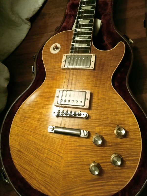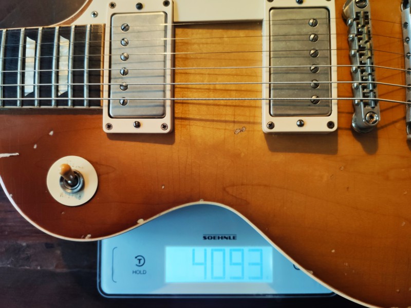 3.8kg pour celle ci. Je n'ai pas spécialement d'à priori sur l'influence du poids sur le son des Les Paul. Par contre, je trouve que ce sont des guitares inconfortables quand elles sont lourdes, en répèt/concert bien sûr mais même à jouer assis. De mon expérience, une LP trop lourde je vais la prendre de moins en moins et elle finira par rester dans son étui...