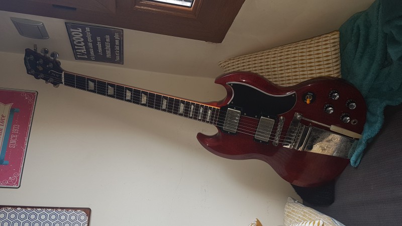 Du coup, comme je vois que les passionnés sont toujours là et que le Gold Top a toujours la côte, je partage avec vous une photo de ma fidèle R7. Elle est de 2011 et m'accompagne depuis 10 ans sans broncher. Elle a connu un remplacement du chevalet par un Tonepros, et les micros par des SD.