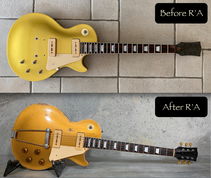 Relic art, il n'est ni guitariste ni luthier (tech) il me semble. Son truc, c'est le vernis. Si le client ne lui demande pas de changer des pièces (et ne les lui envoit pas), il n'y peut rien. Enfin, je crois que c'est comme ça qu'il fonctionne. Après ça fait bien longtemps que je ne suis pas allé voir ses réalisations. Mais je trouve qu'en général tu en as pour ton argent.