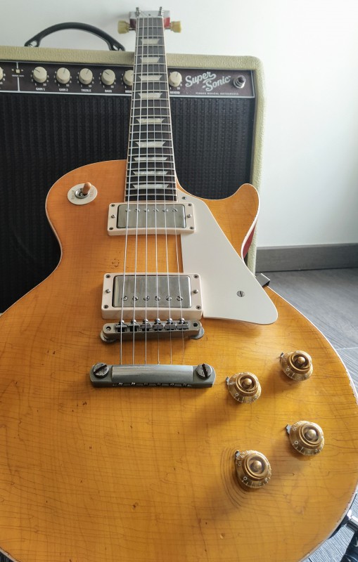 J'avais aussi testé un Wolfetone Marshallhead mk2 bridge qui sonne vraiment bien mais qui est un peu trop bright sur cette LP qui a une attaque assez sèche et justement top pour ce que je joue.