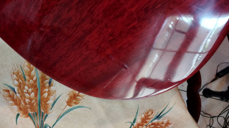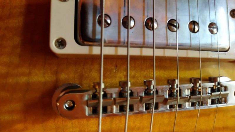 Elle a des traces d'usures au dos et un petit poc entre le micro et le chevalet.