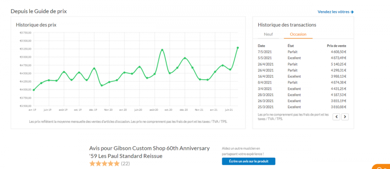 Pour le prix je n'en ai aucune idée, je ne compte pas en gagner car c'est une guitare joué avec des traces d'usure. C'est pour ça que 4500 voir 4000 me semble un prix correct vu l'offre.