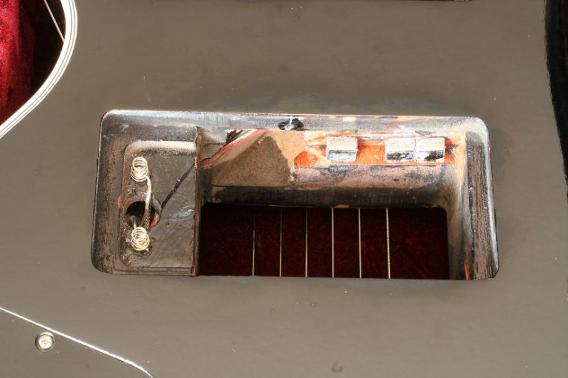 - On a remplacé les connectiques de piles 9V par des petits ressorts coté guitare et des cosses sur les blocs micros pour assurer la liaison électrique
