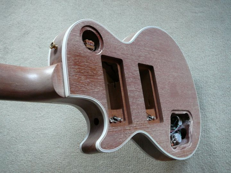 Les micros reposent sur des blocs d'acajou qui sont insérés dans la guitare par l'arrière.