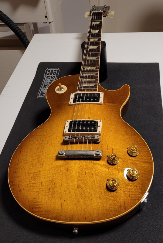 En fait à l'origine il s'agit d'une guitare réservée pour les boutiques qui revendaient des micros Gibson afin de pouvoir les faires essayer facilement et de voir ce que ça donne sur une même guitare.