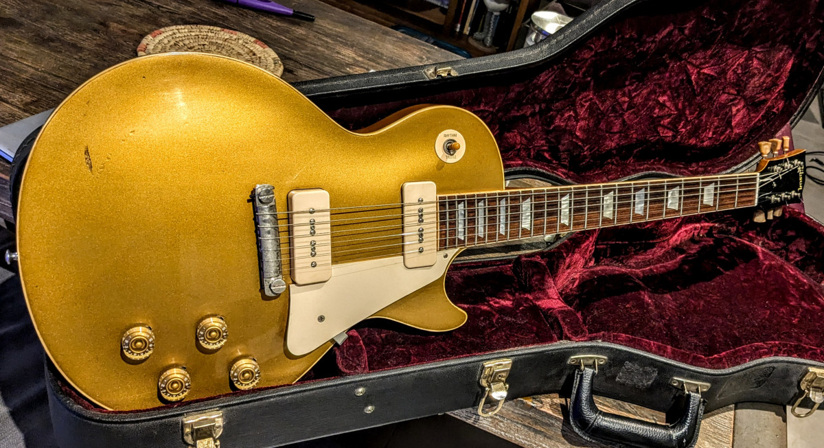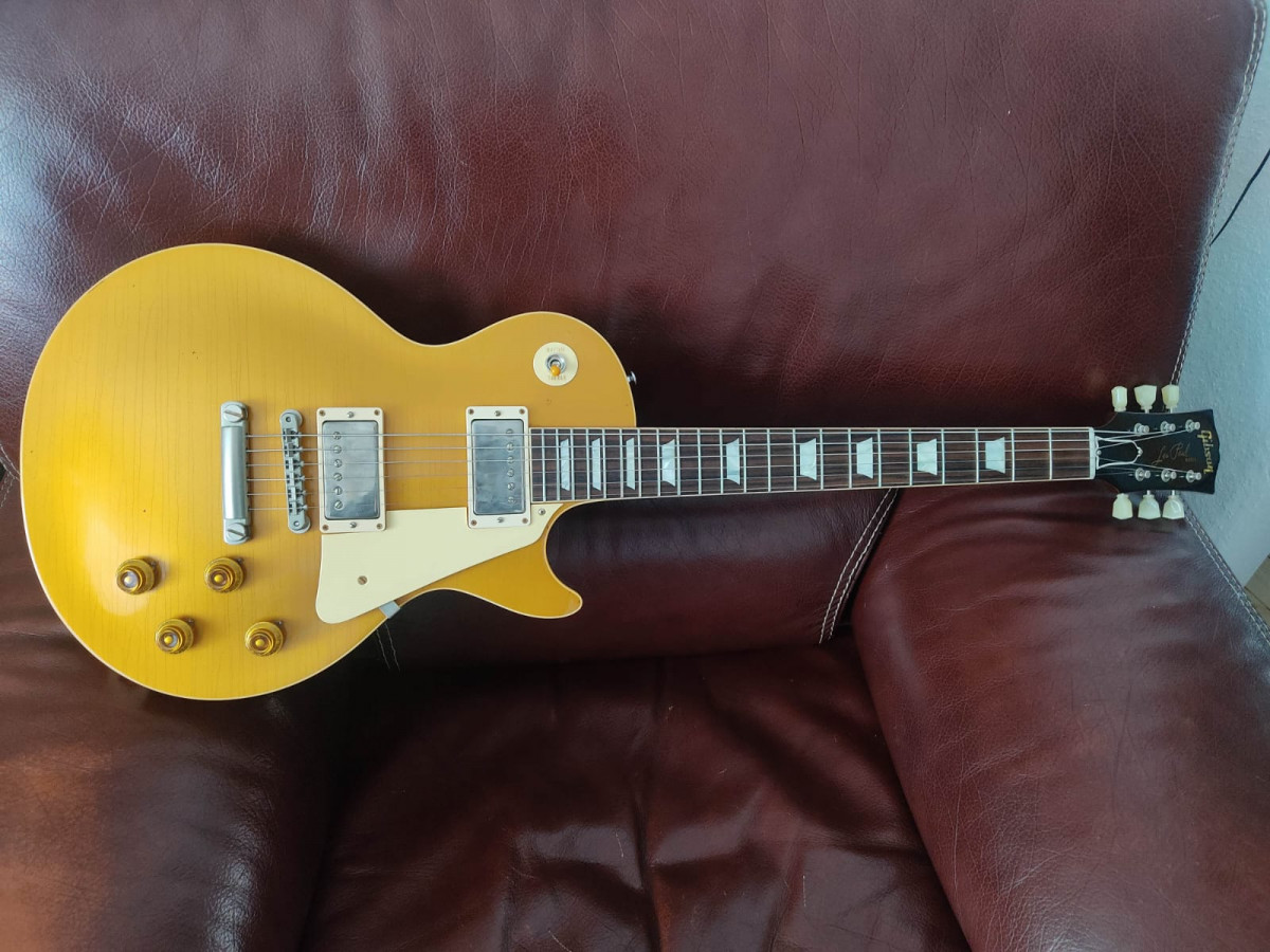 Après plus de trente ans de guitare et de nombreuses pelles à mon actif (dont plusieurs Gibson "standard" ou copies Japonaises), me voici en possession d'une Les Paul Gold Top 1957 Custom Shop True Historic de 2018.