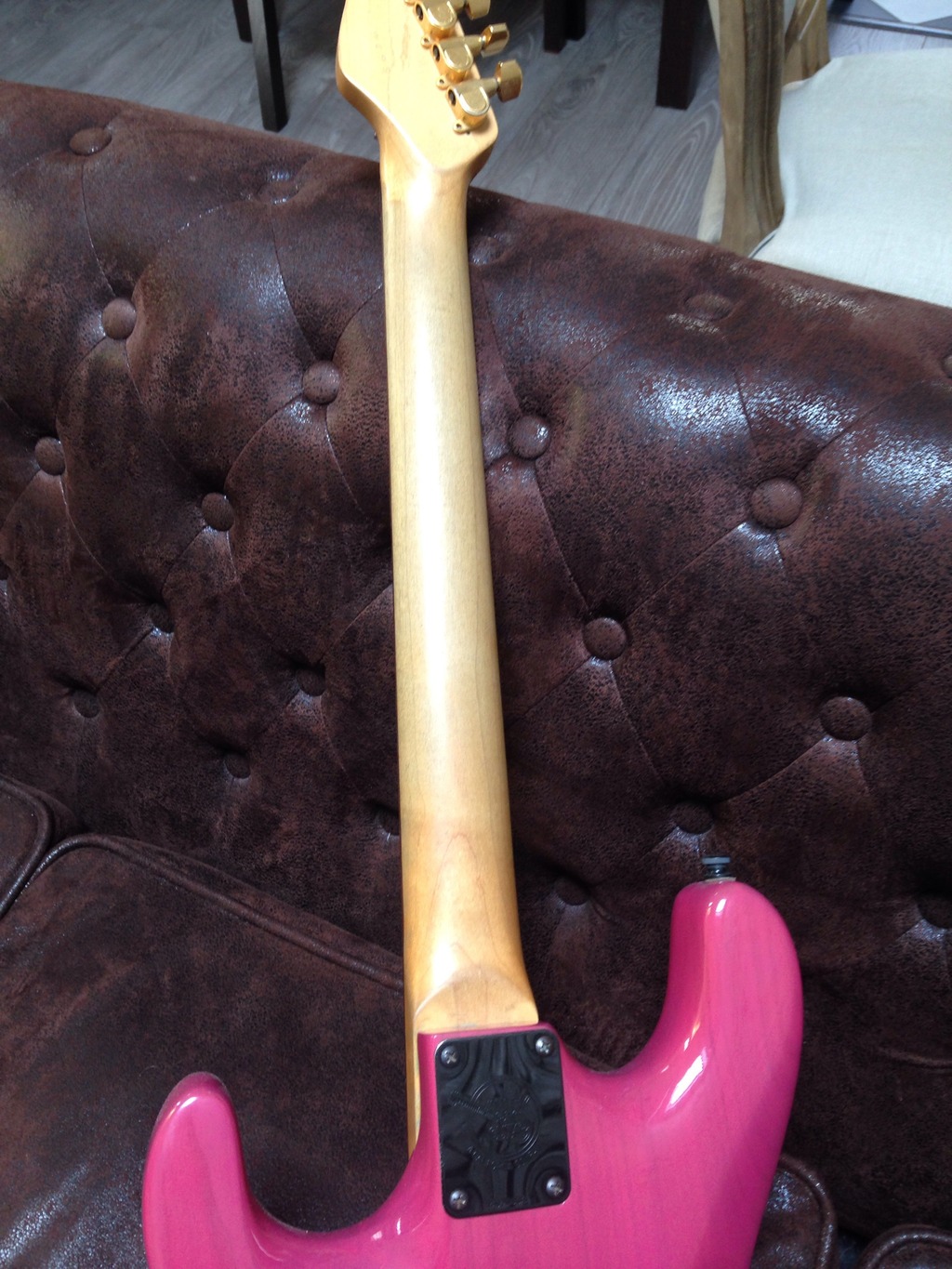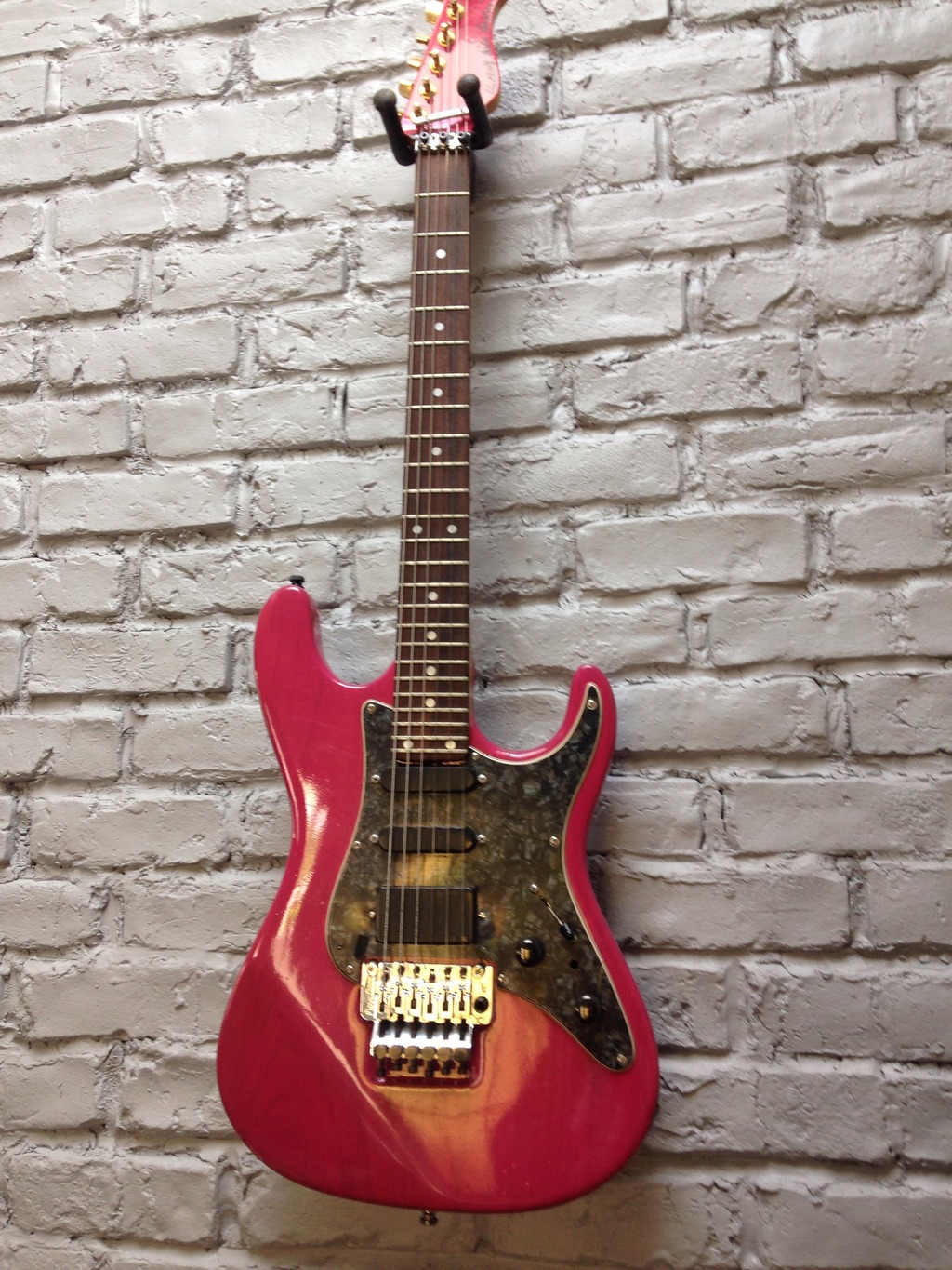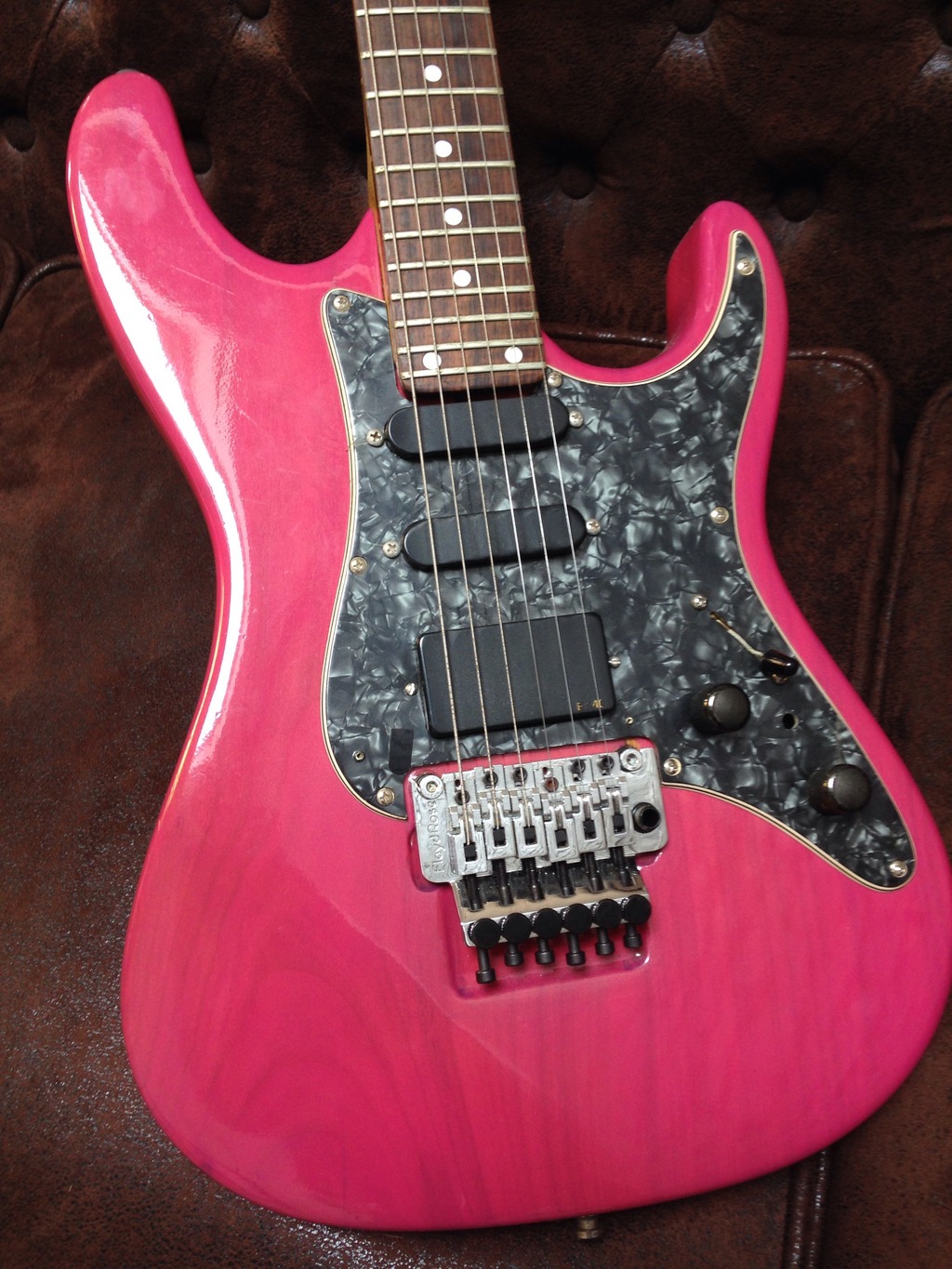 Donc la guitare a été repeinte, la floyd rose qui n'etait plus très fiable a été changé. Les mécaniques quant à elles, je ne sais pas si elles sont d'origine...