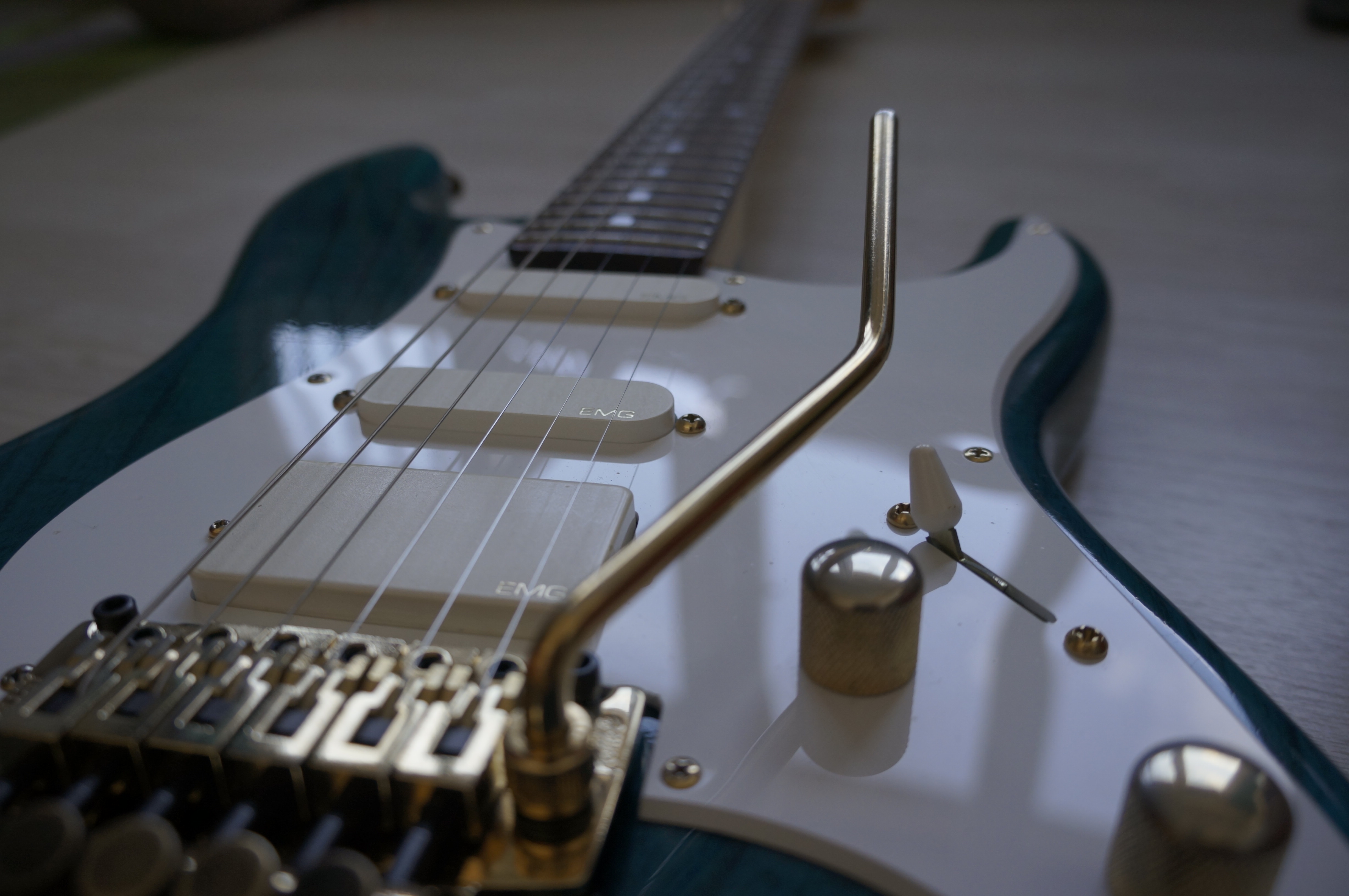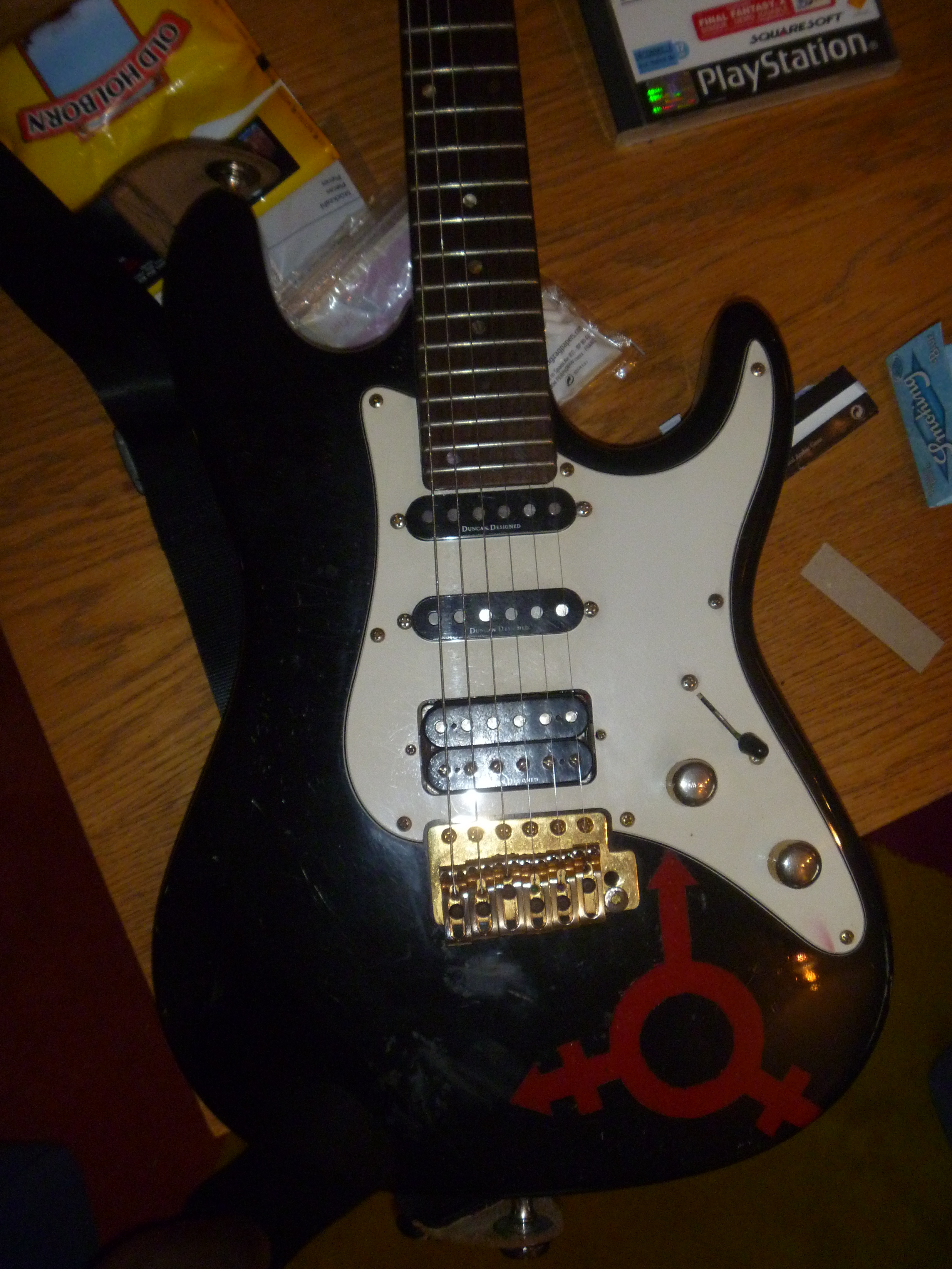 Par contre, c'est quand même ma première gratte! Et le son est encore assez sympa, même si les 3 micros sont pas super équilibrés et que le sustain est médiocre.