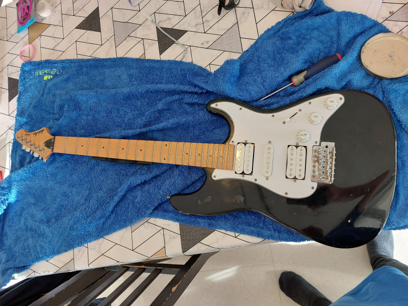 les deux humbuckers sont des FC-50 et FC-52, des micros cheaps mais je pense que je vais les laisser pour le moment.