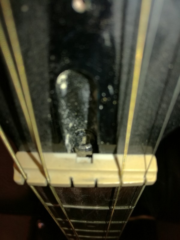 Je trouvais le manche aussi trop éloigné des cordes, et malgré interventions sur le truss rod (qui se manipule avec une clé allen) c'était toujours trop haut.