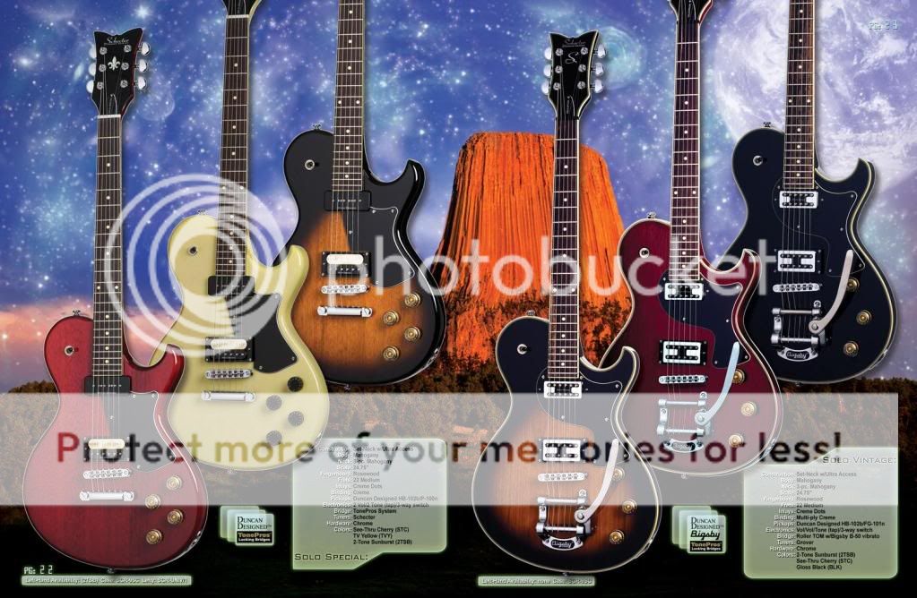 Apparue me semble t'il dans la nouvelle gamme Schecter "Solo" (Solo Vintage et Solo Special) 2009/2010, je suis tombé In Love de cette guitare (de son look, car je n'ai pas eu malheureusement l'occasion de l'essayer). Je l'aime particulièrement en finition TV Yellow.