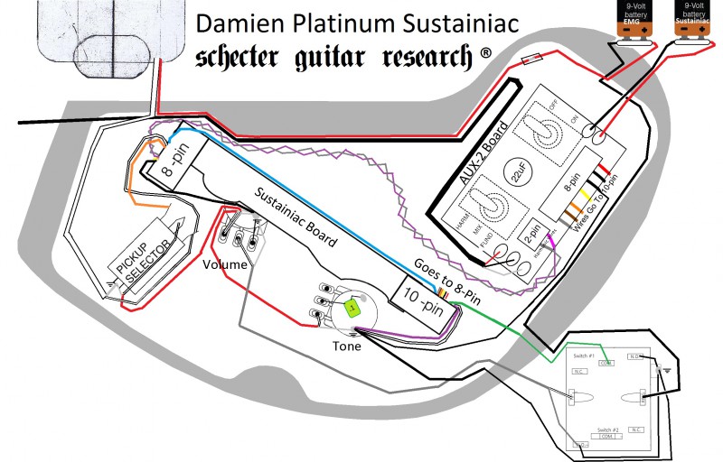 hurtfield #3 Publié par hurtfield le 12 Janv 2017, 19:18 Bon, j'ai pu obtenir et je partage le schéma de la guitare envoyé par un tech schecter : Damien platinium frs sustainiac Si ça peut servir à quelqu'un.