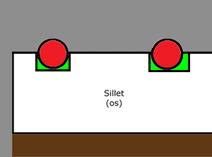 Vous constaterez que j'ai schématisé différemment le sillon de gauche et celui de droite. A droite, j'illustre un cas fréquent dans les sillets standards : pour être adaptés à tous les cas de figure et toutes les cordes (et aussi pour faciliter l'usinage), le sillon est plus large que certaines cordes - ceci amplifie donc d'autant la perte d'énergie décrite plus haut.