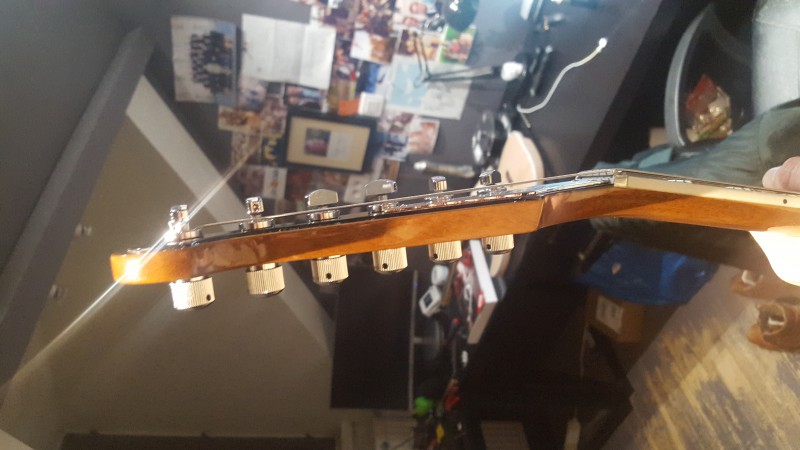 Ben c'est l'angle des cordes entre le sillet et les mecas qui est trop important. Les nouvelles mecas doivent augmenter cet angle j'imagine, du coup les cordes ne sont pas assez plaquées dans les encoches du sillet. Si c'est ça, une des solutions est de mettre un abaisseur de cordes sur la tête.