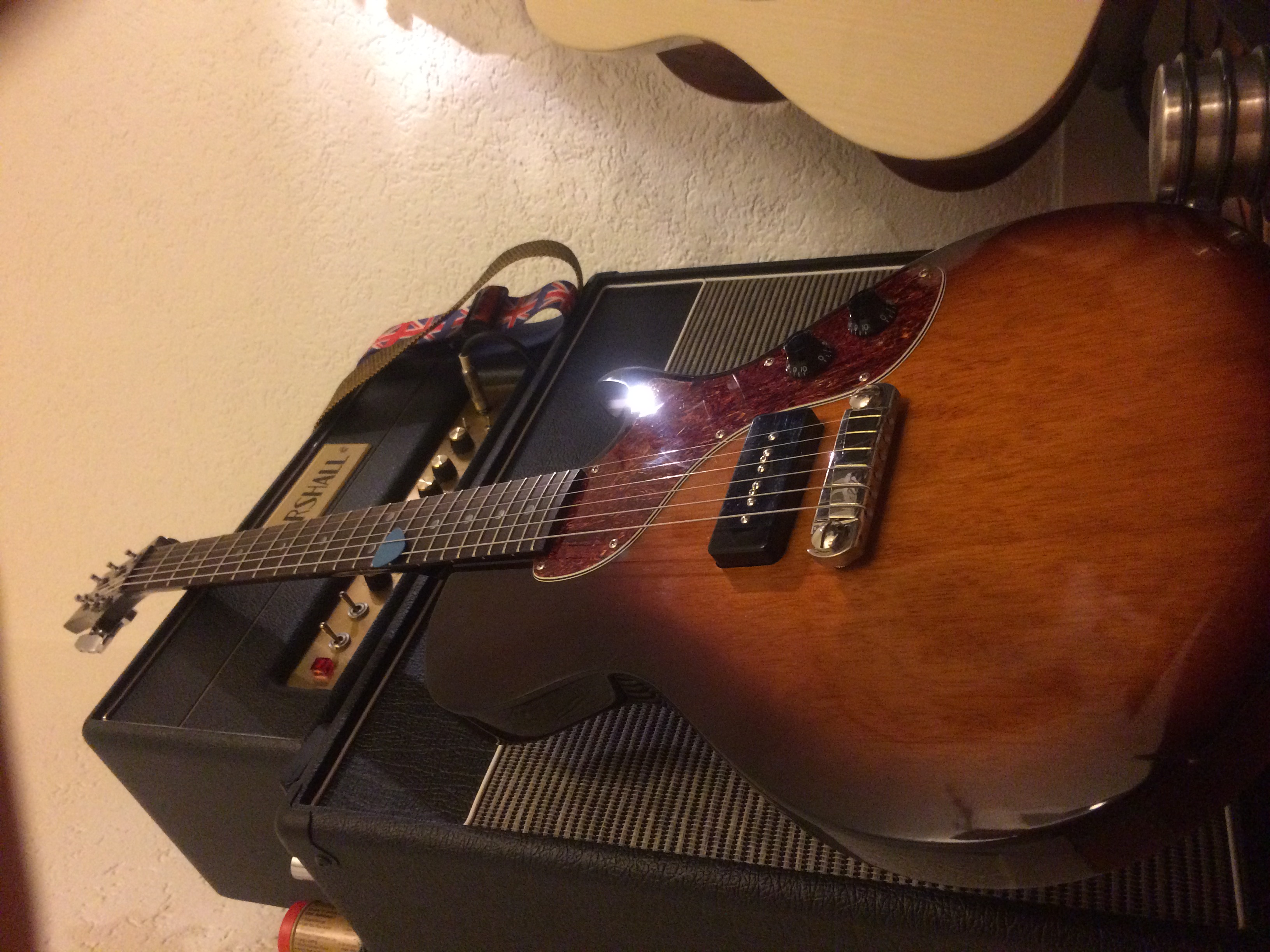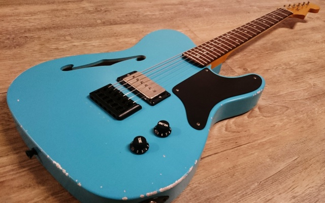 J'ai acheté le corps sur le forum, je ne me souviens plus d'où il venait mais c'est pas du Warmoth. Le manche est celui de ma vieille Tokai des 80's. Le micro est une copie de micro Burns par GFS, ça vaut 30 balles et c'est un putain de micro!
