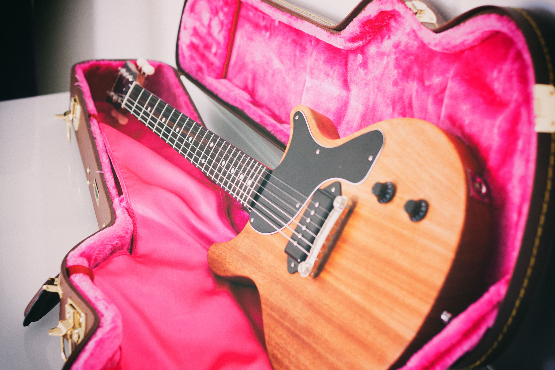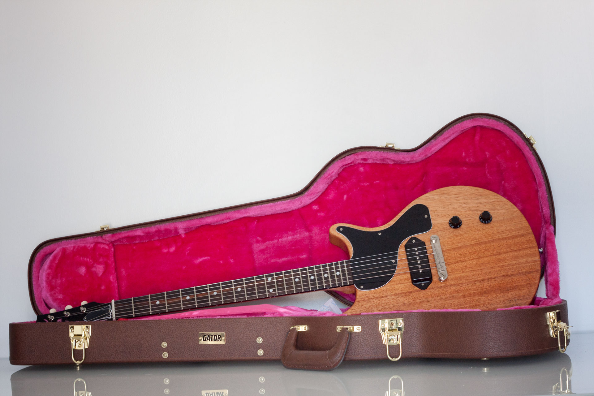 ) et je leur avais demandé s'ils pouvaient m'en faire une dans l'esprit (le modèle n'était pas à leur catalogue), et ça a donné ça. J'ai juste viré le pickguard dont la forme ne me plaisait pas.