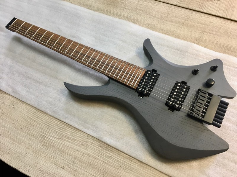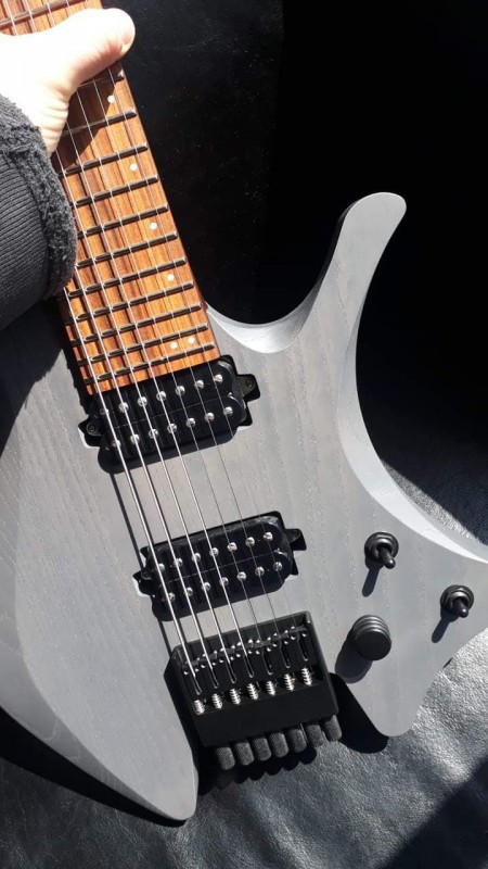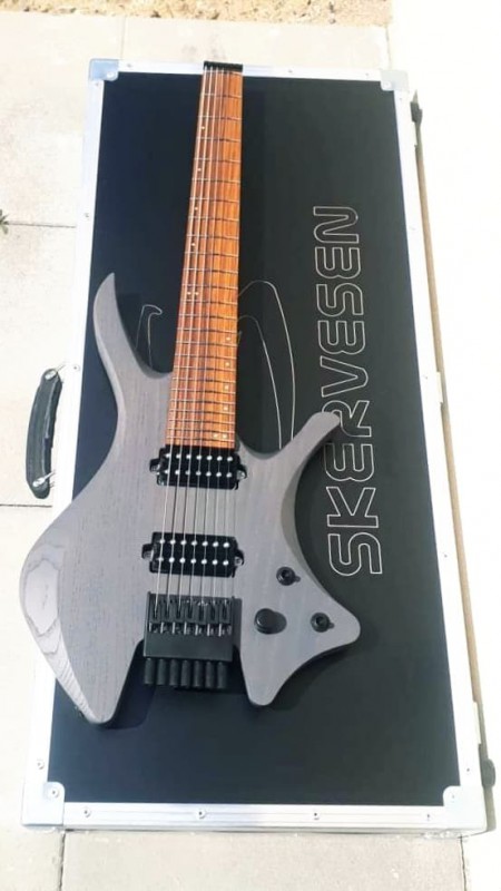 Donc c'est une Shoggie 7 (Headless comme vous pouvez le voir), qui est issu d'une "run" (série limitée de quelques exemplaires, donc pas de full custom, juste le choix des micros, de la couleur et du multi diapason ou non)