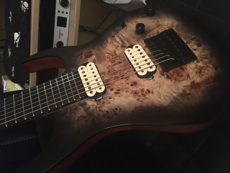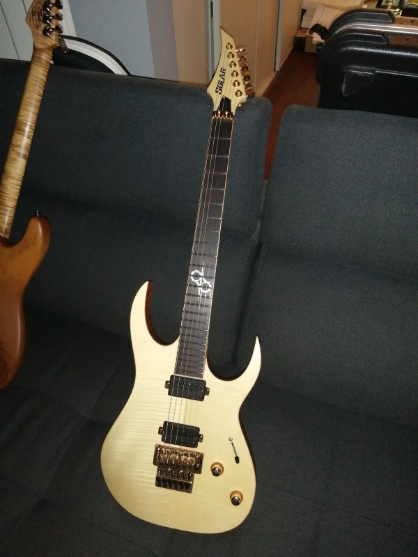 Super agréable à jouer (me fait penser à un manche de Schecter Merrow) et assez différente des autres S1, l'accordage tient parfaitement, je trouve juste que les micros sonnent un peu moins agressifs sur celle-là, mais ça me va aussi.