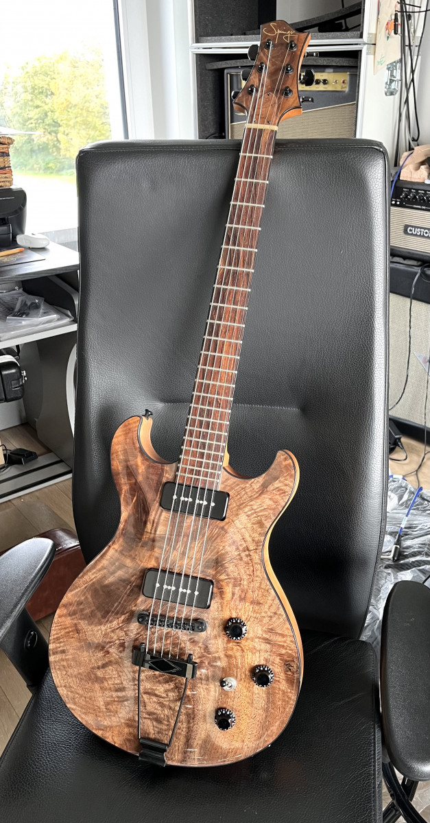 Les micros sont parfait, le bridge avec juste ce qu'il faut en punch, bien plein, avec le volume et le tone il y a déjà de quoi faire en polyvalence tellement ça répond bien. Le micro manche en alnico 3 est assez différent du chevalet, plus "soft" avec un peu plus de clarté, jamais "muddy" , et malgré leurs différences les deux ensemble sont parfaitement complémentaire ensemble. En passant d'un à l'autre très équilibré, pas de saut de volume.