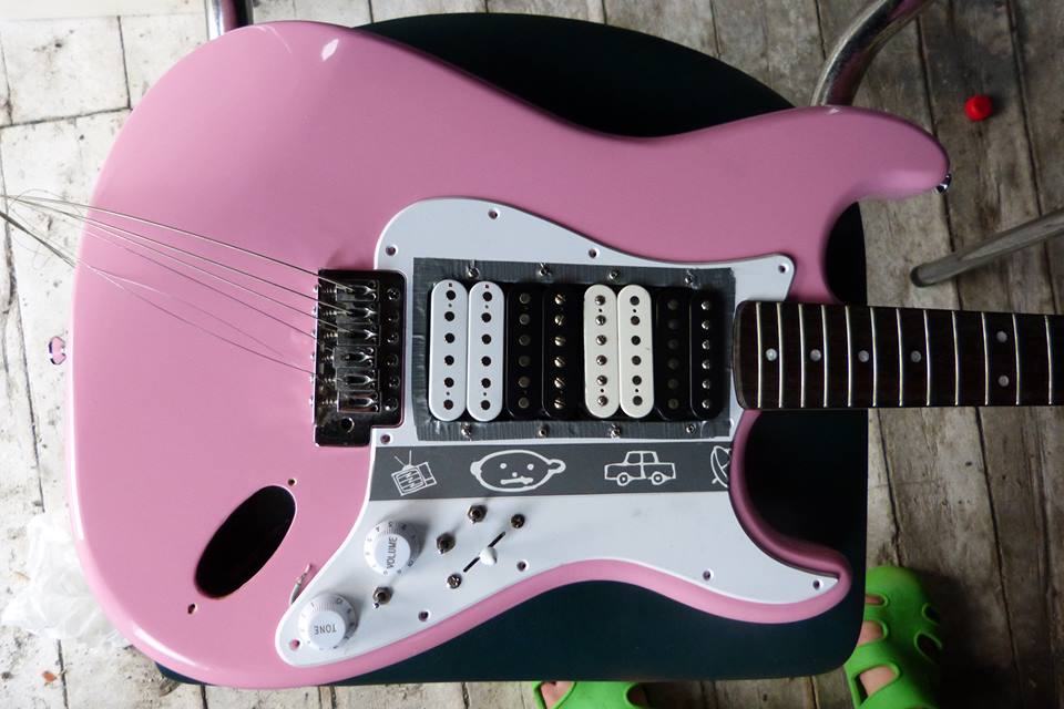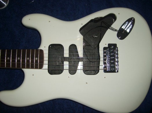 Dilemme : Vais je faire des frais pour lui donner des vrais bons micros ou vais-je conserver le côté over the cheap de cette gratte. J'opte pour la seconde solution et cours m'acheter 3 switchs ON/ON afin de modder la gratte. J'ajoute donc un switch par micro afin d'obtenir les sons hors phases, parrallèles et séries. Et la, le miracle se produit, en voila une palette sonore sur ce bout de bois. Coup de coeur pour la mise en série qui sonne aussi bien qu'un "vrai" humbucker et ce, sans larsen à haut volume malgré l'énorme niveau de sortie des micros mis en série."