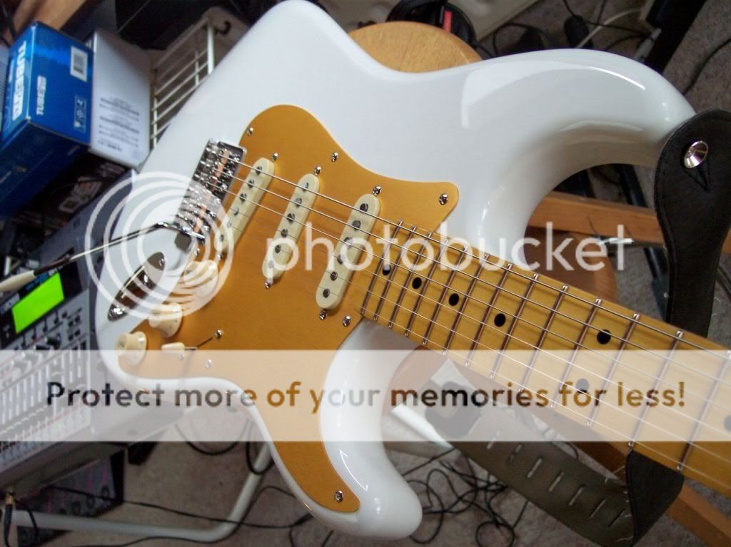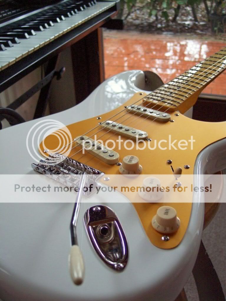 La vraie surprise étant le vibrato qui contrairement à ce que j'ai lu ici et là tient tout à fait bien l'accord (avec mes précautions habituelles: 10-46, bon montage des cordes et lubrification du sillet).