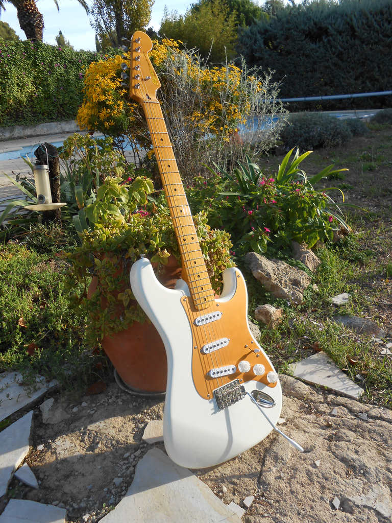 Après moult péripéties, j'ai fini par dégotter une petite Strat' avec LA finition ultime (si si).