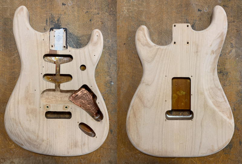 Quoi qu'il en soit, le pin etait une essence de qualité (est toujours, au demeurant), pour faire des corps de guitare. Une excellente resonnance.