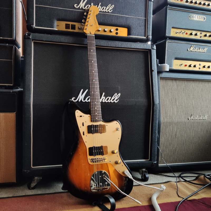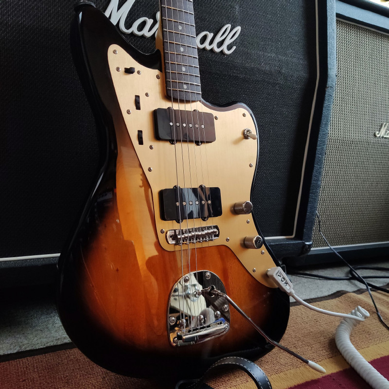 Le piège étant que souvent, je finis par me contenter de la version Squier, une fois que j'ai bien travaillé dessus! Ca a été le cas pour la Jaguar (j'adore vraiment ma petite Squier qui me comble, même si une Johnny Marr ... ) ou la basse VI, ainsi que pour ma strat "Hendrix" (gauchère renversée).
