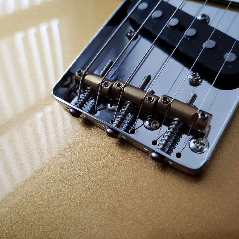 Bon, au départ je ne pensais pas changer les pontets acier de ma Nashville, l'intonation étant malgré tout satisfaisante ainsi, d'autant que toutes mes autres teles sont en pontets laiton, donc ça me faisait un peu de variété.