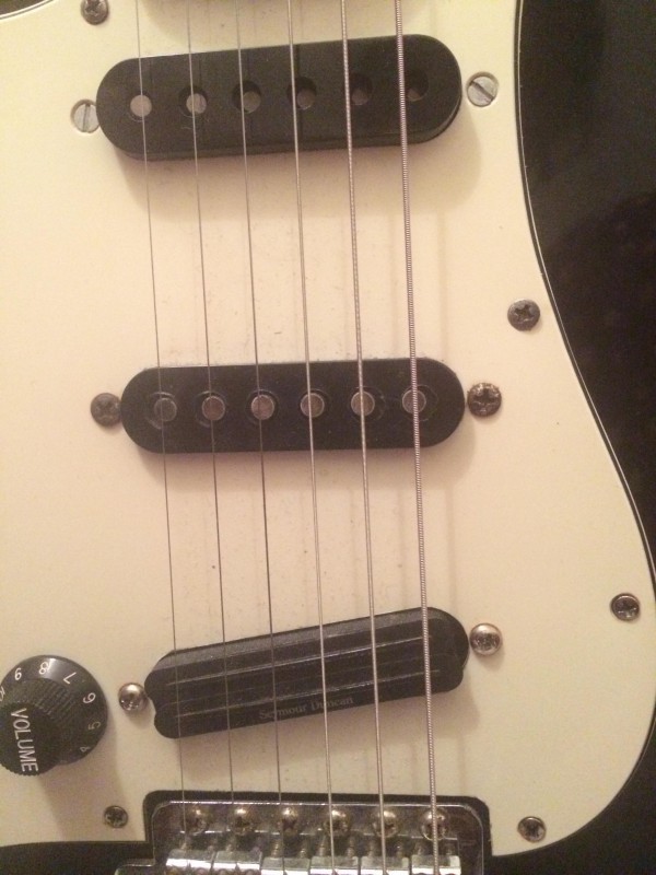Je suis nouvelle sur le forum car je me questionne sur le modèle de ma strat, achetée d'occaz il y a 5 ans environ pour commencer la guitare electrique. C'est une stratocaster de squier (logo or contour noir) modele gaucher made in korea avec l'autocollant 50th anniversary au dos de la tête. Le vendeur m'avait dit qu'elle datait de 1995-96 mais je ne sais pas quel modele c'est (affinity, standard, etc...) Il me semble qu'il m'avait dit que c'était une standard mais impossible de me rappeler avec certitude. Le numero de serie est CN6040053 et deux micros ont été modifiés : un seymour duncan au chevalet et le micro manche je ne sais pas la marque mais il fonctionne très mal (faux contact probablement), seul le micro central est d'origine.