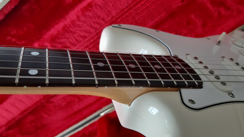 A noter, la sculpture du chanfrein stomacal est une des plus réussie que j’ai vu sur toutes les Stratocaster qui me sont passées par les mains; une courbe fine et régulière façon « Fullerton » que l’on aimerait retrouver sur beaucoup de modèles bien plus chers.