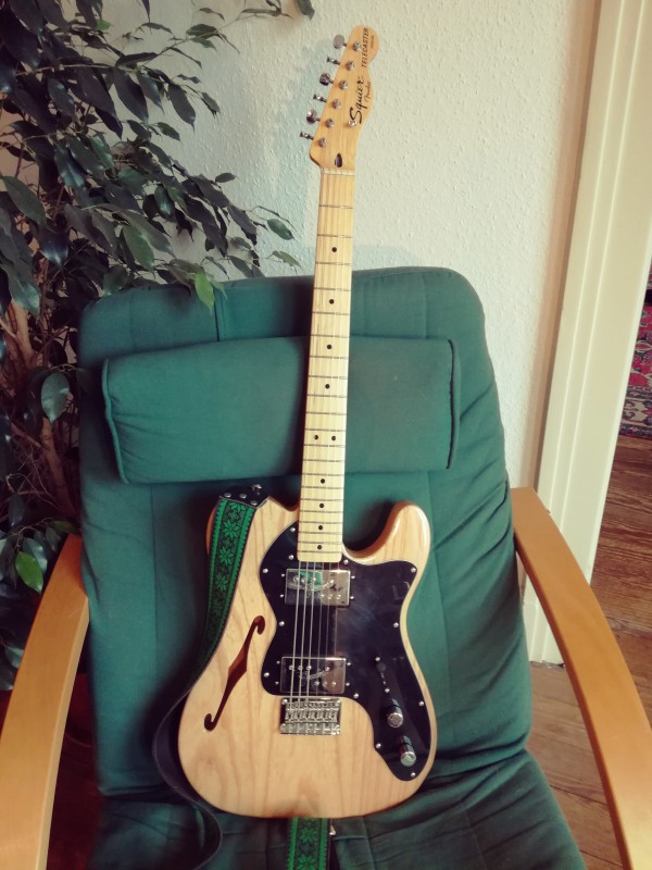 Les sensations de jeu après réglages (pose de cale, merci la carte fidélité Devred, réglage hauteur du chevalet, des pontets, intonation, resserrage du vibrato, huile de citron pour la touche, cordes d'addario 11-49) sont excellentes, on a pas l'impression de jouer sur une Squier, mais clairement chez la maison mère.