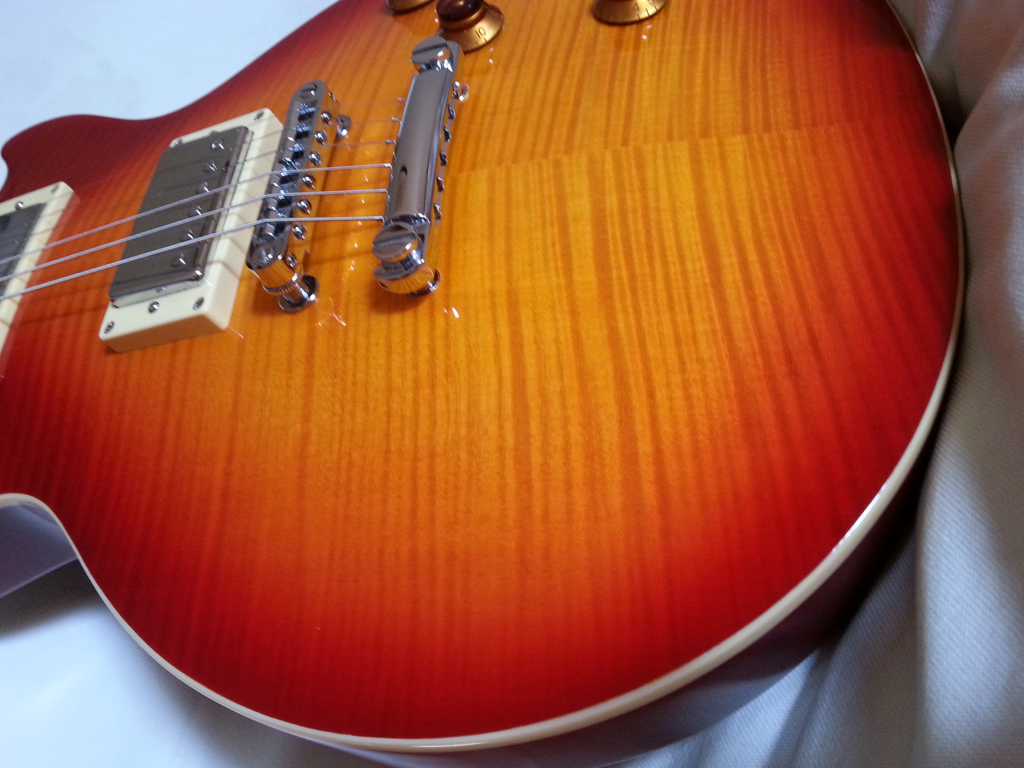 Peut-être avec un flammage un poil plus accentué... Sinon niveau Hardware, je resterais sur du SP Custom, à mon avis partir sur la base des Origin 57 (micro actuel), et leurs donner juste un poil plus de corps dans les grave, accastillage standard, profil du manche comme il y a sur les SRLP actuelle (ce manche est parfait à ma main, c'est assez ouf !), peut-être juste des frettes medium... Car les vintage j'ai déjà jouer ça sur une strat' j'trouvais ça... Bizarre on va dire. Et les Jumbo actuelles sont un poil trop grosse (pour soloter c'est impeccable, mais pour le jeu en accord un peu moins).
