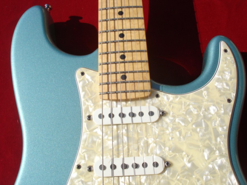 Le set de micros est composé de deux Texas spécial + Un seymour duncan "pearly gate" F-spaced (soit avec des pôles alignés sur les côtes du micro chevalet des stratocasters).