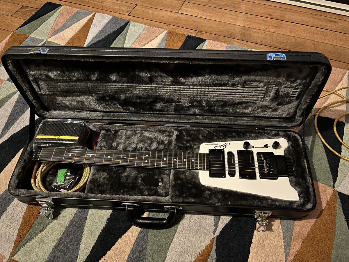 Pour ma part, j'ai rapidement été conquis à l'usage de ce format, que j'avais initialement pensé comme toi utiliser lors de longs déplacements professionnels (guitare trouvée en occasion en 2014, de mémoire 300 ou 400 euros, je crois que l'instrument était vendu neuf dans les 800 euros, à confirmer car il existait aussi la version TranScale à diapason long avec système de capodastre intégré et capteur piezo, plus chère) : mais le sentiment de liberté que me donne cette absence de tête et (presque) de corps, tout en conservant un "vrai diapason" (j'ai déjà tendance à trouver le diapason Gibson trop juste, alors les mini instruments de voyage ne m'attirent guère) m'a intéressé au-delà de ce seul usage, au point que j'ai du mal aujourd'hui à jouer sur une "solid body" aux contours plus classiques (pour les caisses jazz et les acoustiques, c'est différent).