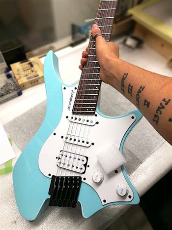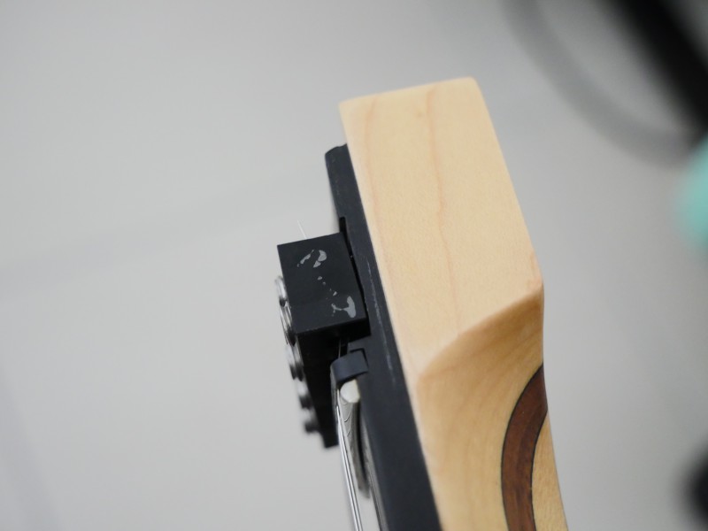 Néanmoins y a quelques défauts de finition : déjà des marques blanches autour de la prise jack, et une bloque corde où le revêtement est gratté à la tête.