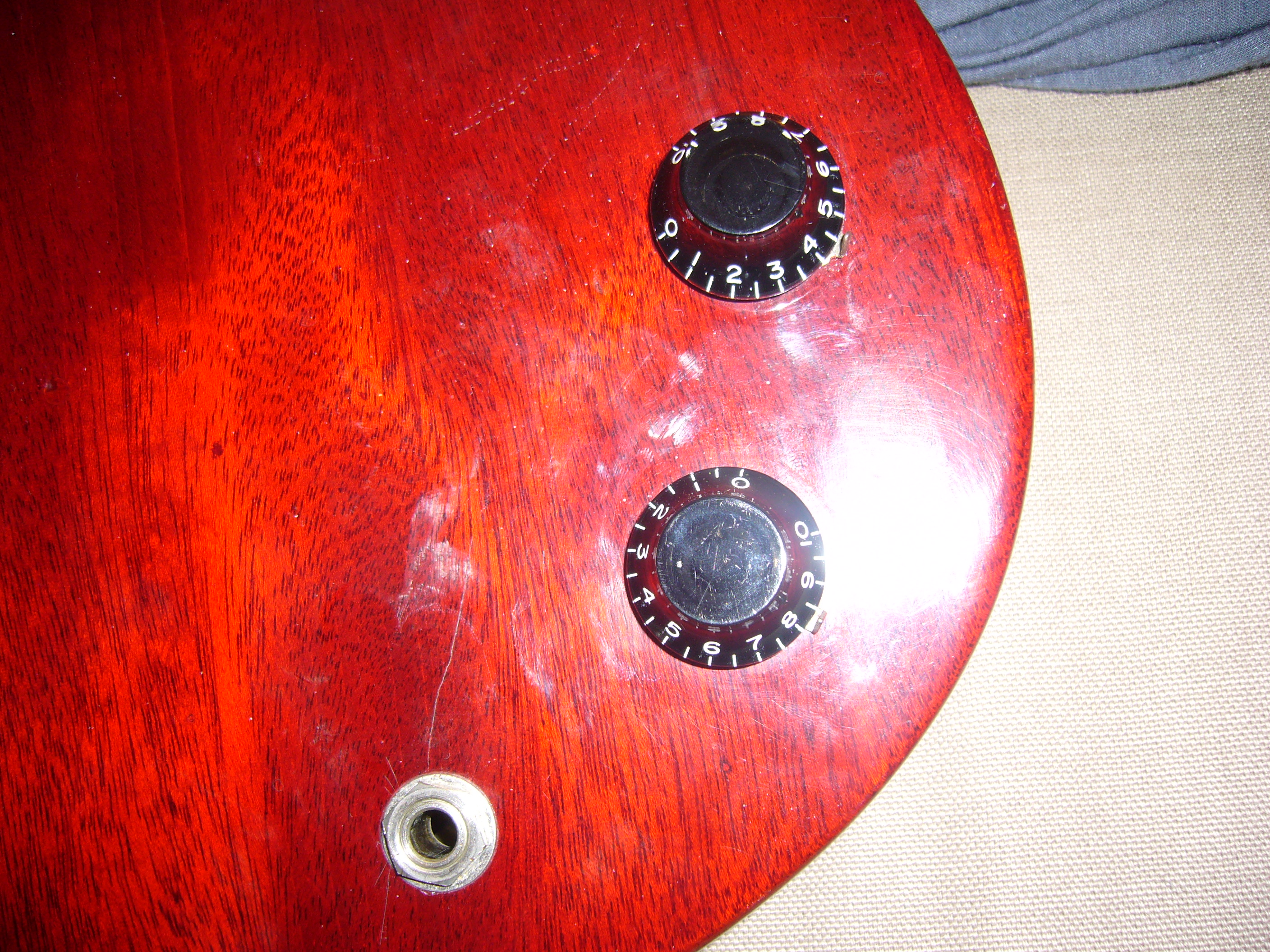 -L'électronique n'est pas conforme non plus, potards MIJ peut-être (le même type d'inscription que sur les pots Orville), condo vert polyester au lieu de la pastille céramique.