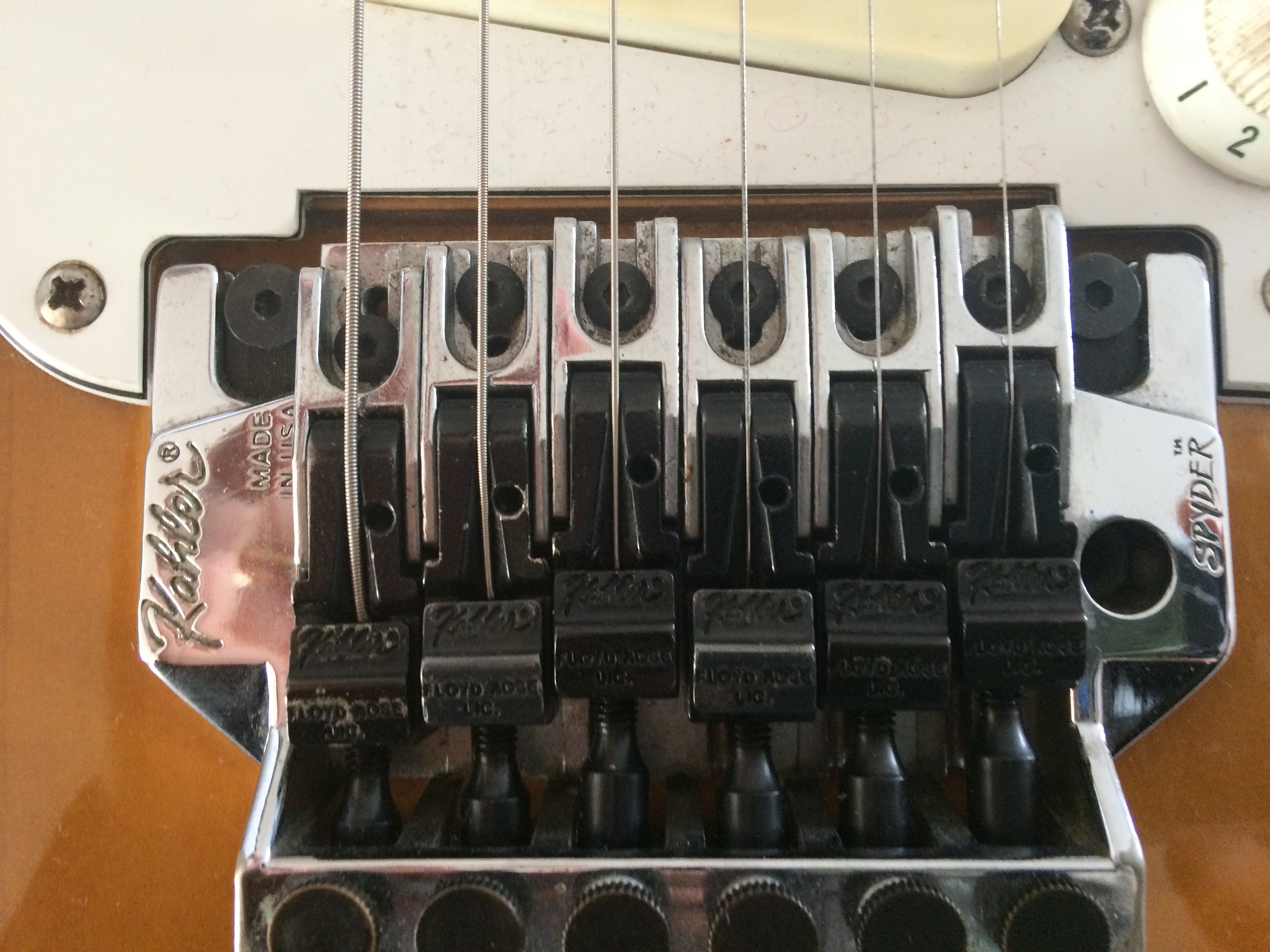 Tu devrais regarder sur le net comment fonctionne un Floyd rose (d'un point de vu fonctionnement et architecture, le Spyder et le vrai Floyd rose c'est strictement la même chose)